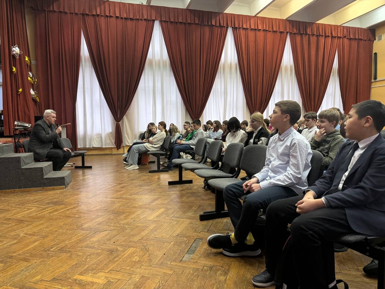 Андрей Александрович также привез с собой несколько музейных экспонатов, которые более наглядно иллюстрировали ту эпоху. Его рассказ был пронизан глубокой болью и гордостью за людей, которые отстояли свободу. В завершении лекции учащиеся задали много вопросов, а это значит, что память о тех днях жива и важна для нашего будущего.