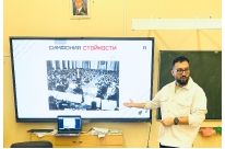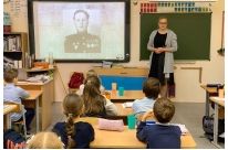 О подвиге «Непокоренных» — жителей блокадного Ленинграда — с шестиклассниками беседовал учитель истории и обществознания Александр Александрович Оджо.