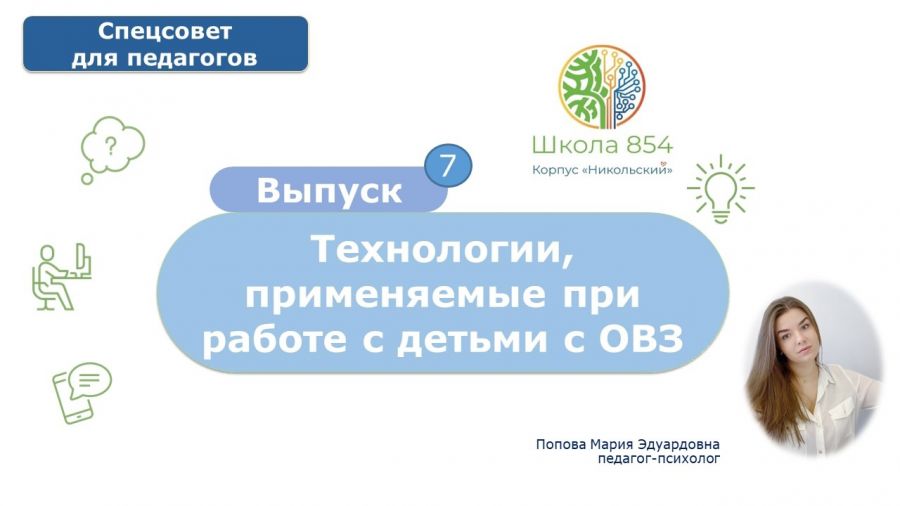 ️Педагог-психолог Мария Эдуардовна Попова расскажет о «Технологиях, применяемых при работе с детьми с ОВЗ».