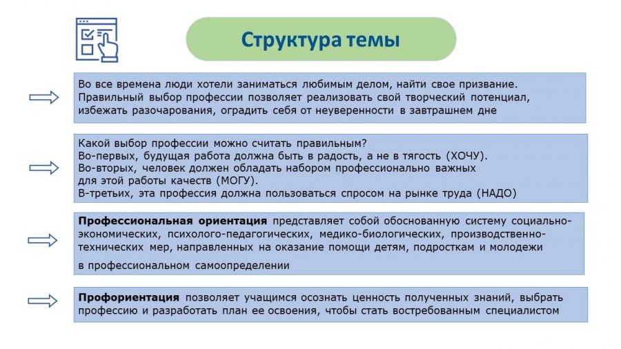 Правильный выбор профессии позволяет реализовать свой творческий потенциал, избежать разочарования, оградить себя от неуверенности в завтрашнем дне.