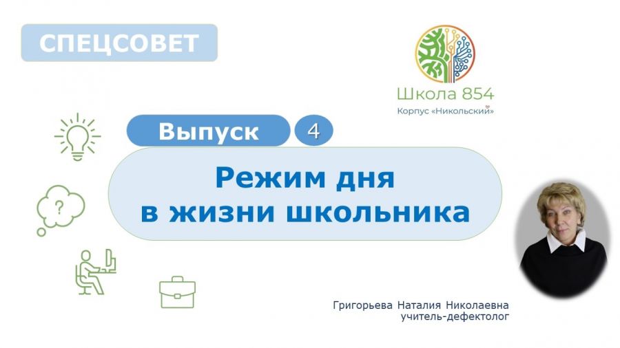 Учитель-дефектолог Наталия Николаевна Григорьева сегодня расскажет о «Режиме дня в жизни школьника».