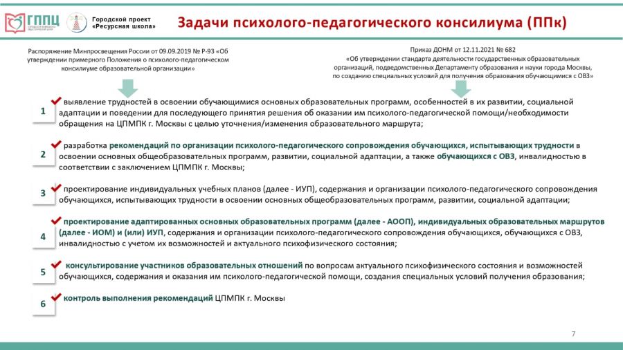 25 сентября 2025 года Городской психолого-педагогический центр (ГППЦ) г. Москвы провел инструктивный семинар для координаторов проекта «Ресурсная школа» (РШ) на тему «Организация деятельности службы психолого-педагогического сопровождения и психолого-педагогического консилиума: нормативные требования и документация».