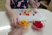 Сортировка цвета по образцу – важный элемент в цепочке занятий по изучению цвета с особенными дошкольниками. Даже если ребёнок не соотносит названий цветов с их визуальными моделями, он учится узнавать цвета на глаз. А ещё – сличать цвета с образцом, видеть свои ошибки и исправлять их.